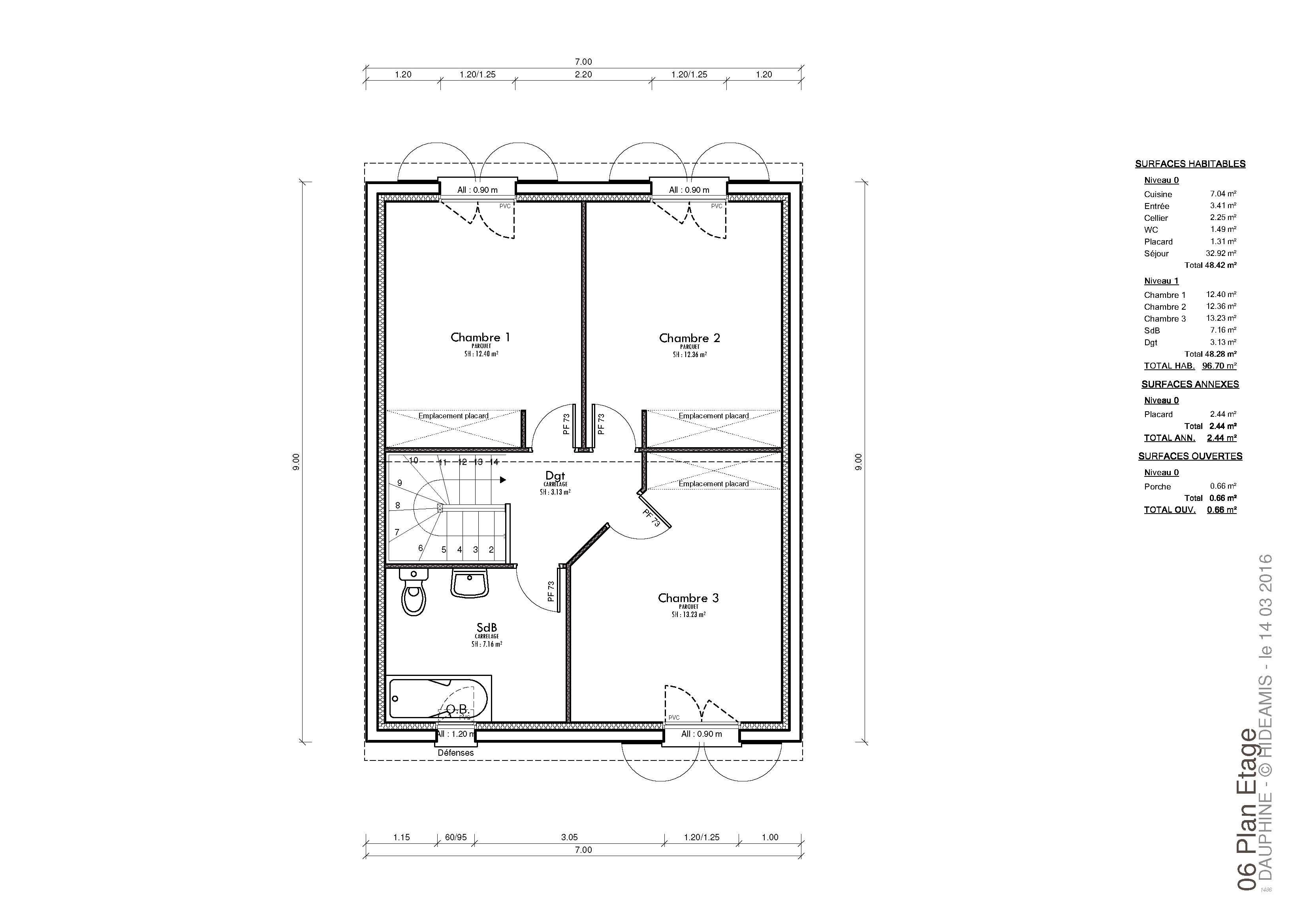Le modèle Dauphine est une maison à étage de 96 m² habitables, au style traditionnel à la fois sobre, élégant et compact. Son architecture équilibrée lui permet de s’intégrer facilement dans tous types d’environnements et de s’adapter à toutes les configurations de terrains.
